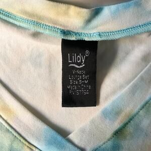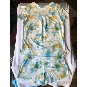 Lildy Women’s Set of Short Sleeve T-shirt & shorts, size S-M, Tie Dye White Blue