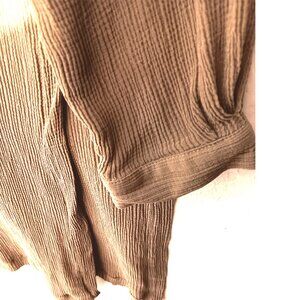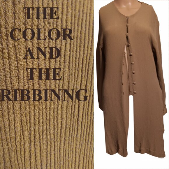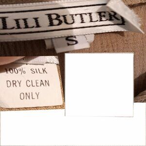 Lili Butler Long Silk Beige Ribbed Long Sleeve Blouse Size Small