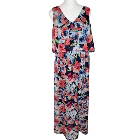 Lili Rose Maxi Dress Printed Back Floral Boho Blue Orange Summer Size Medium
