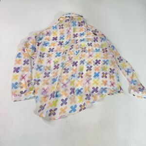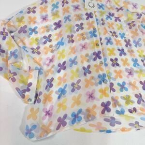 Lili Sidonio Shirt Blouse Women Retro Small Bright Floral Sheer New Button Down