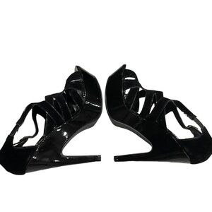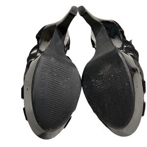 Liliana Anura Faux Velvet Suede and Patent Leather Heeled Platform Sandal SZ 6.5