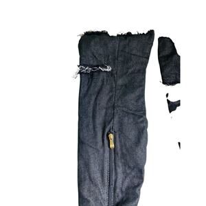 Liliana Barbara Thigh High Over Knee Denim Open Toe Stiletto Heel Boot Black 7.5