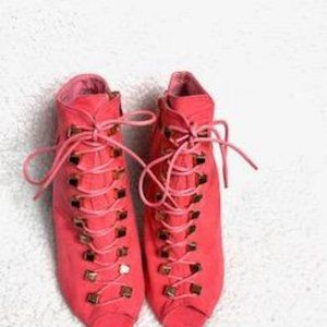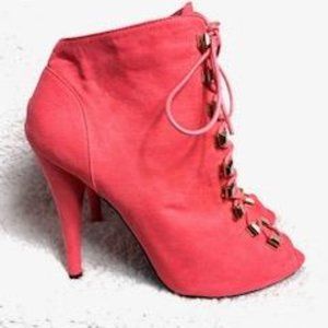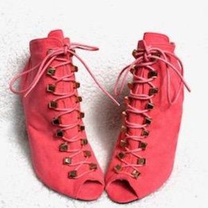 Liliana Lace Up Booties almond peek toe heel approx 4 1/2' good preloved condition please use pictures as part of description