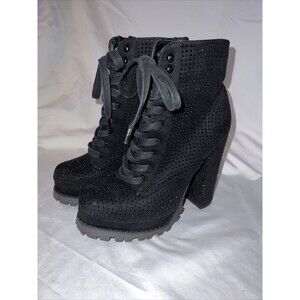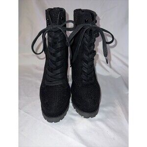 Liliana Monclair Lug Sole Lace Up Chunky Heel Platform Sequin Combat Boot Sz 10