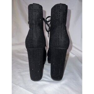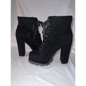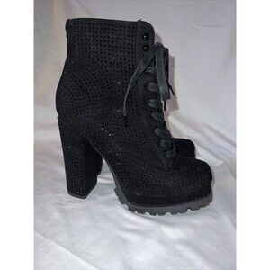 Step up your shoe game with these stylish and versatile black lace-up combat boots from Liliana Monclair. Designed for women with a US shoe size of 8, these booties feature a chunky heel and platform lug sole for added comfort and durability. The faux suede upper material is designed with sequin accents that add a touch of glam to any outfit. The lace-up closure ensures a secure and adjustable fit, making them perfect for everyday wear or a night out on the town.