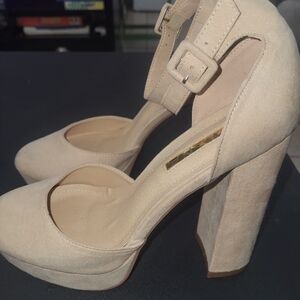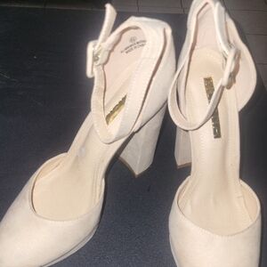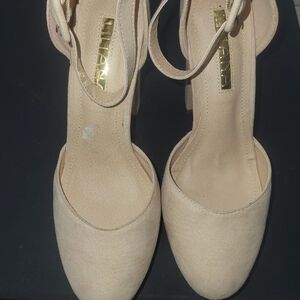 Chic nude heels by Liliana. Features a stylish ankle strap. Perfect for any occasion.