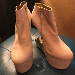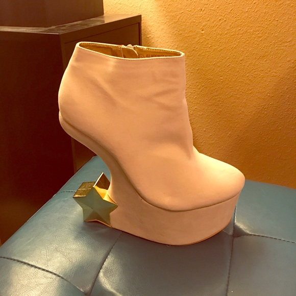 Practically new. Only worn for a photo shoot indoors. Anti slip stickers on the soles. Man made faux suede. 6" heel. Very comfortable for how high the bootie is.