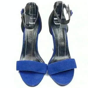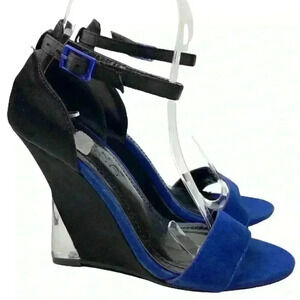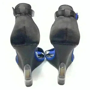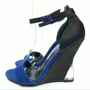 Liliana womens heels size 5.5 black blue satin wedges formal black tie