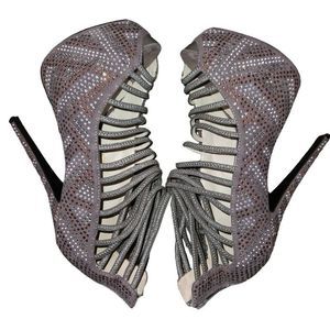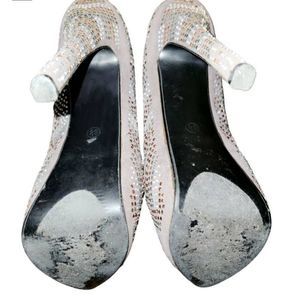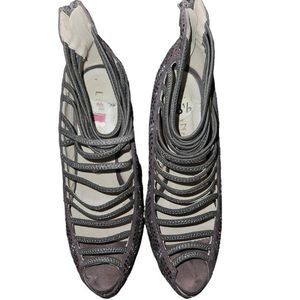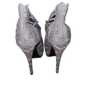 Liliana Pewter Multicolored Rhinestone Front Elastic Cutout Peep Toe Platform Stiletto Heel Pumps Size 9