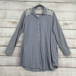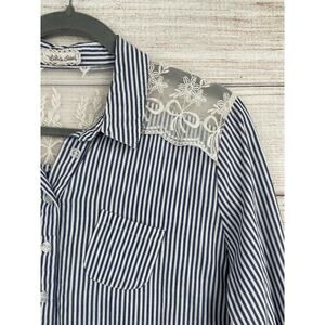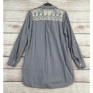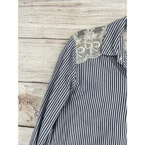 Item: Lili's Closet 1/2 Button Striped Lace Back Tunic Top Women's Medium Blue/White Anthropologie