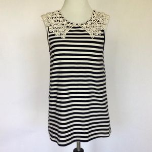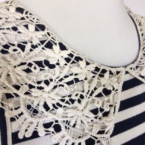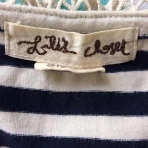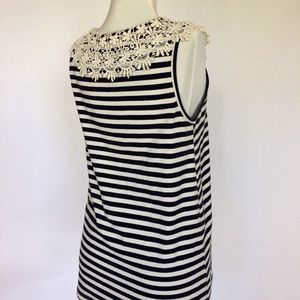 This soft, navy & off-white striped Lili's Closet shirt from Anthropologie is sooo soft and comfy, perfect for warm summer days. Has a tent/A line fit, which is very relaxed.