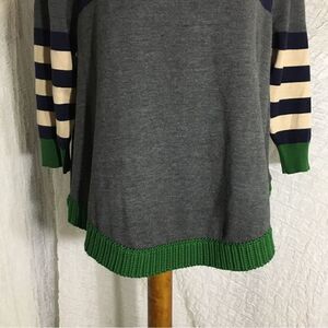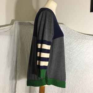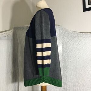 Gray, Navy, Green, color block sweater top. Pre-owned in good condition. Please refer to pictures for best description and condition verification.