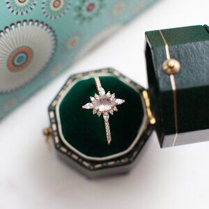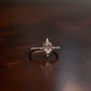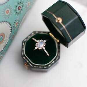 A true standout piece, this labradorite ring brings together soft shimmer and subtle detail. Set on a delicate 14k gold vermeil band with a solid 925 sterling silver base, the oval-cut labradorite catches the light with every move. Each stone has its own unique glow, giving every ring a one-of-a-kind finish.