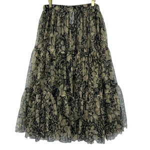 Lilith Skirt Womens Size Small Floral Brown Black Tiered Layered Tule Maxi Goth
