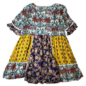 Lilka Anthropologie Patchwork Trapeze Flowy Short Boho Dress Size Large