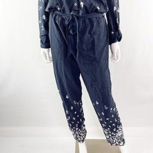 Lilka Anthropologie Size S Navy Blue Floral LAKESHORE Long Sleeve Jumpsuit