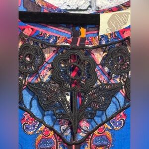 Stretchy waist and has pockets! Size large. Measures 21” pit to pit, waist will stretch to 41”, 39” long from shoulder seam down. Excellent condition.