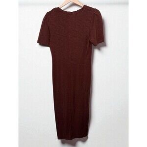 Lilla P Brown Maxi Dress XS V-Neck Short Sleeve Soft Jersey Minimalist Chic