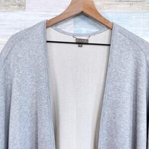 Lilla P Longline Open Front Ruana Sweater Gray Ribbed Knit Womens One Size OS