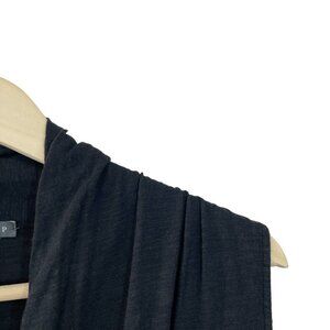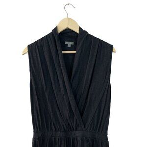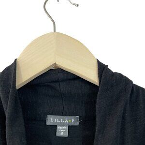 Lilla P Medium Dress Black Fit & Flare Pima Cotton Deep V Wrap Neck Womens