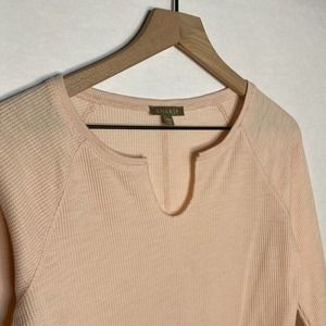 Lilla P Quarter Sleeve V-Neck Casual Thermal Top Pastel Pink Extra Small