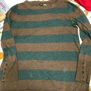 Lilla P Stripe Blue Gray/Brown Sweater button sleeves Size L