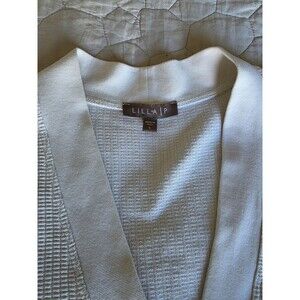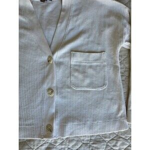 Lilla P Waffle Texture Crop Button Up Sm Cardigan Cream Top Sweater Cotton Blend