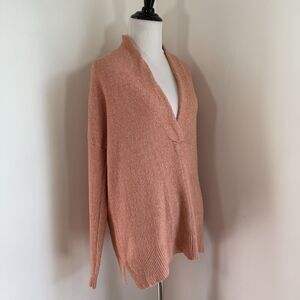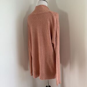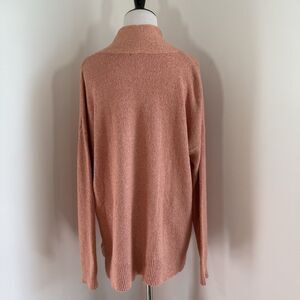 Lilla P Women's Cotton Cashmere Sweater in size small features a beautiful orange pink color scheme with a shawl collar accent. This oversized sweater has a relaxed fit and is made from a cashmere blend fabric in a tight-knit style. Perfect for travel, casual, workwear, or business occasions, this sweater offers a stylish and comfortable option for women looking for a versatile and high-quality piece to add to their wardrobe.