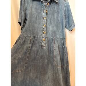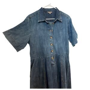 Lilla P blue Denim collared midi dress button front short sleeves small