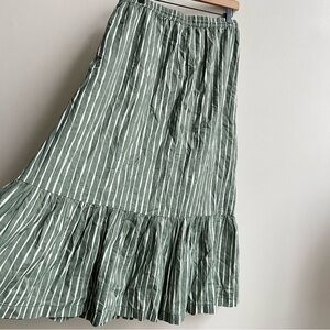 Lilla P womens Green & white stripped 100% Cotton Midi/Maxi Skirt Size Medium