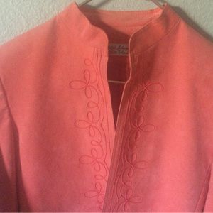 Beautiful ultra suede jacket with raised needle trim. Excellent condition !