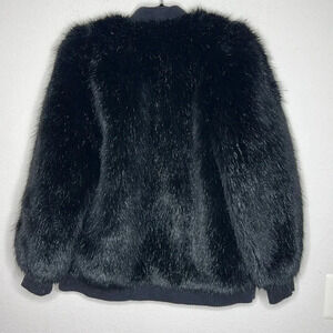 In excellent condition. From armpit to armpit is about 19 inches and 28 inches long. Beautiful faux fur bomber.