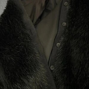 Lilli Ann Faux Fur vintage Black Bomber Jacket Sz medium Made In USA