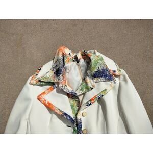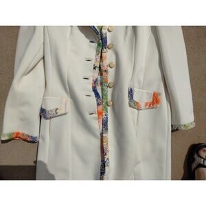 Lilli Ann Knit Vtg. Cream Med Long Jacket Coat Matching Dress Lined Medium
