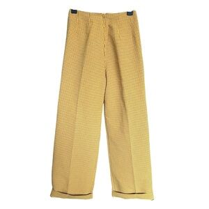 Lilli Ann VTG Wide Leg High Waist Checkered Pants Yellow/Grey Retro Classic SZ S