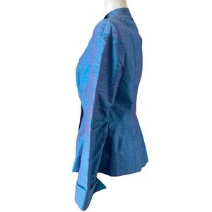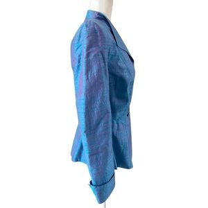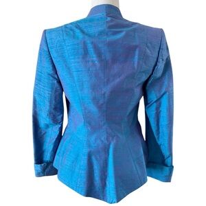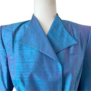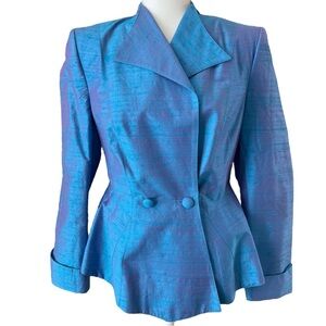 Lilli Ann Vintage Iridescent Blue Silk Peplum Blazer Jacket Size 6 Deadstock