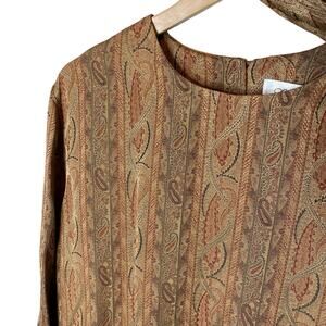 Lilli Ann Vintage Paisley Jacquard Blouse with Matching Scarf size 14