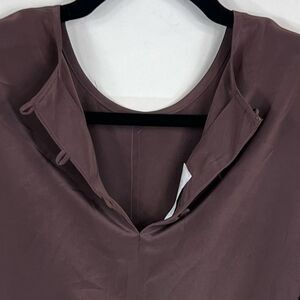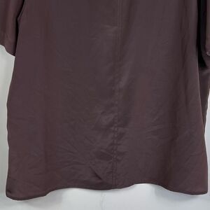 No size tags.. size based on measurements shown in photos. Three button back and very silky feel. Short sleeves make this the perfect shell for layering. Vintage and made in USA with union tags