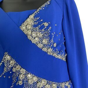 Lilli Diamond Vintage Blue Sheath Midi Rhinestone Beaded Dress Long Sleeve 10