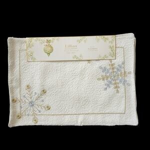 Lillian August Christmas Placemats Set of 4 Gold & Silver Snowflake Holiday Glam