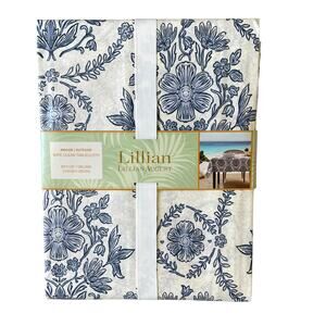 Lillian August Floral Easy Care Indoor Outdoor Tablecloth 60x120 Blue White NEW