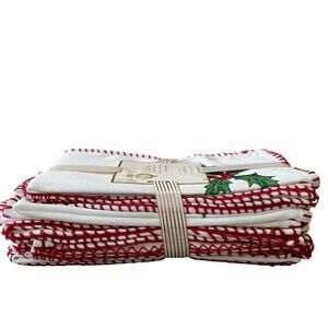 Lillian August Holly Berry Christmas Dinner Napkins Set of 8 Embroidered 18x18