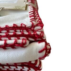 Home Decor, Kitchen, Dining, Table Linens, Holiday Napkin Set, Holiday Decor, Christmas Decor, Trending, Merry Christmas, Santa, Holiday Entertaining, Red, Scalloped Edge, Gift, Unique Gift, Hard to Find, Candy Cane, Santa, Party, Snow, Winter, Fall, Holly Berry