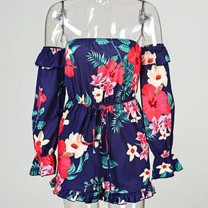 Off The Shoulder Floral Printed Romper