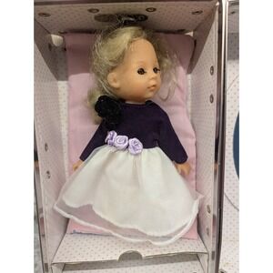 The Lillian Vernon 7" Mini Blonde Doll & Trunk Clothes and Accessories Lot is a charming set perfect for all ages. This vinyl doll features straight blonde hair, blue sleep eyes, and a light complexion. The set includes a trunk, clothes, shoes, and the doll herself, making it a complete playset for any young girl. With a fashion and beauty theme, this Lillian Vernon Mini Doll is a fun and engaging addition to any doll collection.