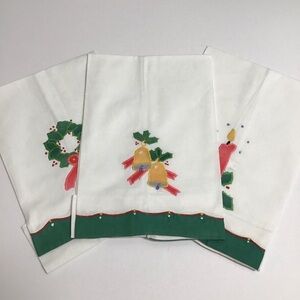 Lillian Vernon Christmas Tea Towels Holiday SET OF 3 Appliqués 1984 Vintage NEW