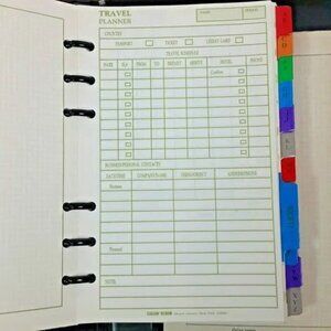 Stay stylish and organized with this Lillian Vernon leather planner. This 6-ring binder organizer in a classic maroon/burgundy color is perfect for keeping track of your schedule, notes, and more. Features an undated calendar, card slots, and quality leather cover. Minor scuffs and some fading of pages due to age, but pages are clean with no writing. Approx. size 8.5 x 6.5" with 1" rings. A great choice for planners, organizers, office supplies, and time management.
