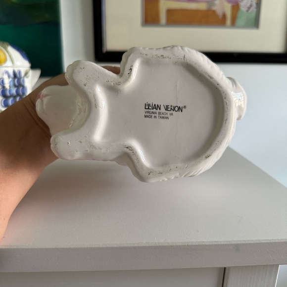 Lillian Vernon White Glazed Ceramic Bunny Planter Easter Candy Jelly Bean