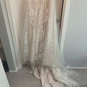 In a stunning and soft color, this gown speaks volumes without being overwhelming, making it the perfect backdrop for your love story. Wear it with confidence and let its beauty shine on your unforgettable day.