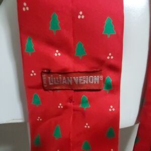 Lillian Vernon red and green Christmas tree patterned 100% silk tie!
